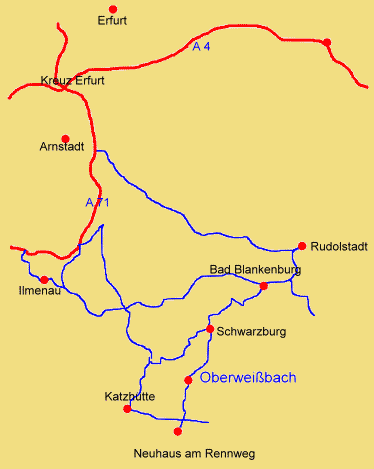 Kartenausschnitt mit Autobahnen A 4 und A 7: